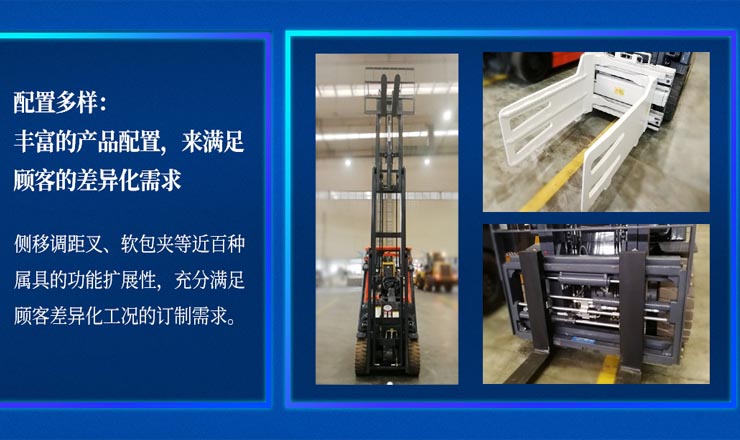 側(cè)移調(diào)距叉、軟包夾等近百種屬具的功能擴展性,充分滿足顧客差異化工況的訂制需求。