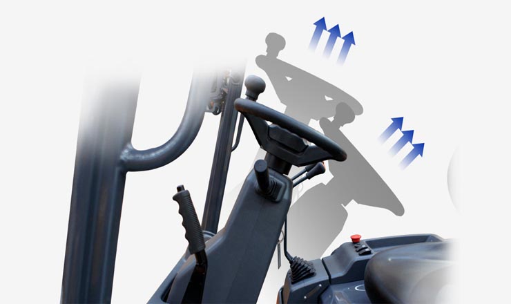 基于人機工程學的空間設(shè)計及模擬技術(shù),并配置具有徐工自主知識產(chǎn)權(quán)的雙自由度轉(zhuǎn)向操縱機構(gòu),打造更舒適的操縱體驗。