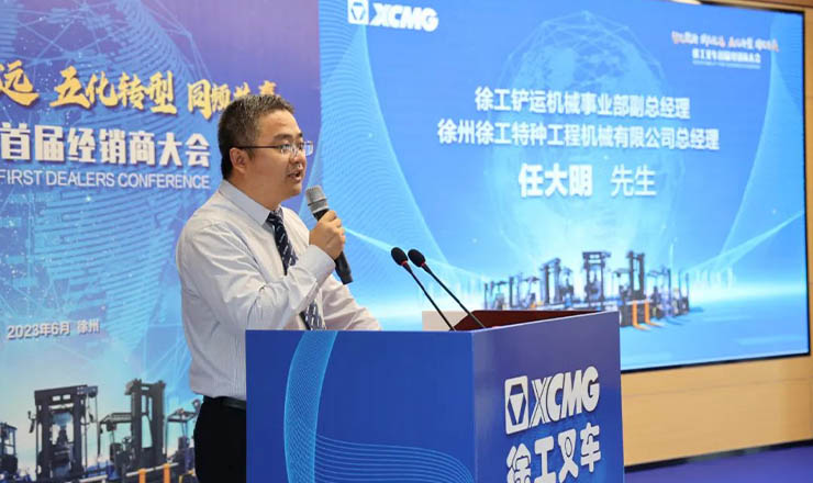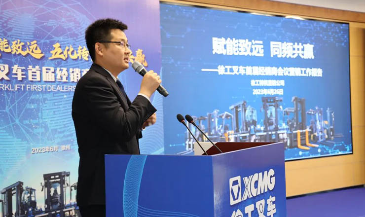第二個環(huán)節(jié)是徐工叉車營銷工作報告。徐工特機副總經(jīng)理、營銷公司總經(jīng)理胡斯勒在會上作了營銷工作主題報告,回顧近年徐工叉車取得的市場成就,從宏觀角度深刻剖析全球及行業(yè)發(fā)展趨勢,全面闡述了徐工叉車戰(zhàn)略藍(lán)圖、經(jīng)營模式、業(yè)務(wù)模式,開拓了我們經(jīng)銷商的經(jīng)營思路和應(yīng)對措施,鼓勵叉車經(jīng)銷商們協(xié)同一致,行而不輟,未來可期。
