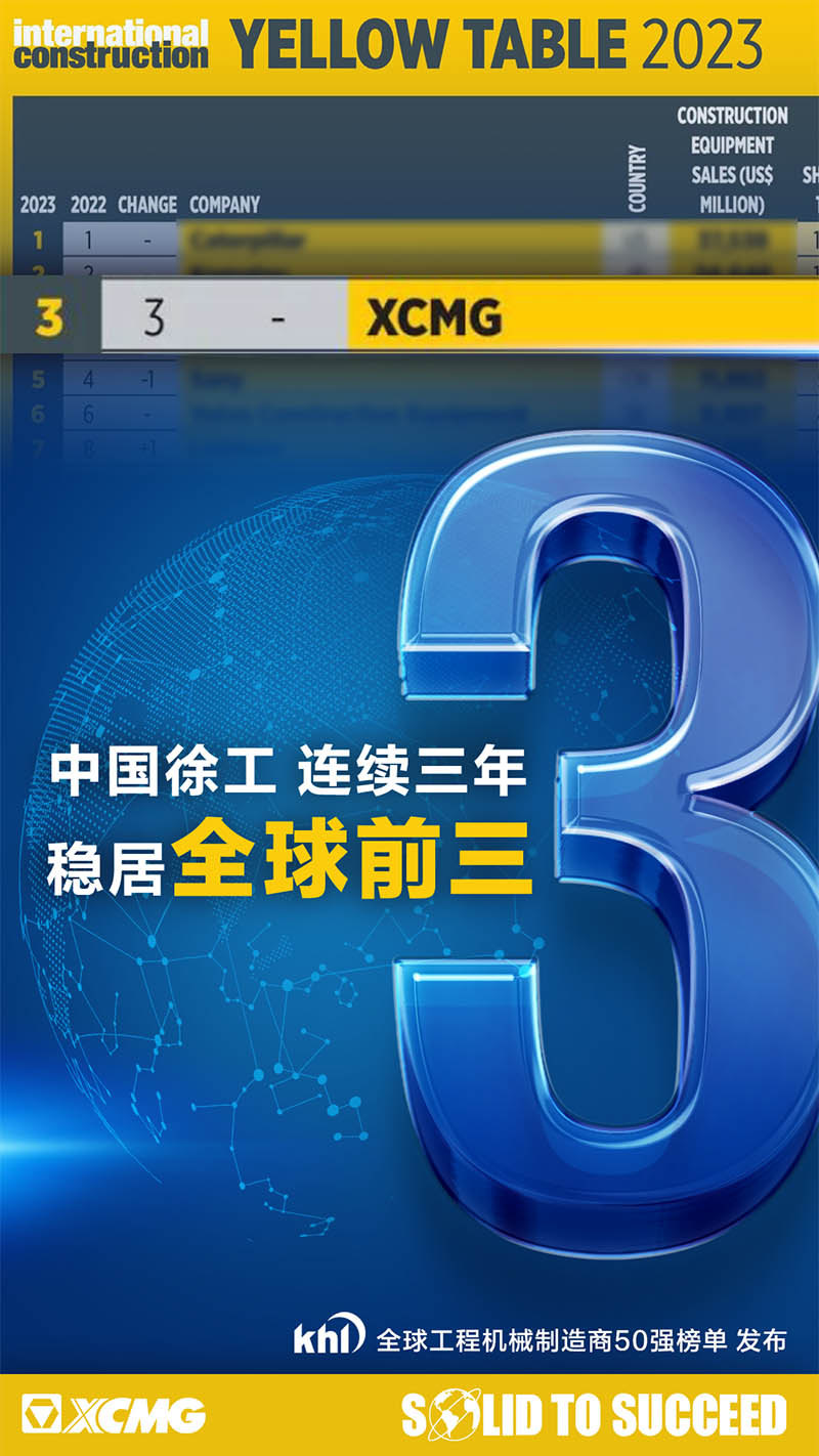 6月1日,由全球工程機(jī)械行業(yè)知名資訊集團(tuán)KHL旗下《International Construction》雜志權(quán)威發(fā)布的Yellow Table榜單顯示,中國(guó)制造商徐工XCMG蟬聯(lián)第三位。徐工也成為唯一連續(xù)三年躋身全球前三甲的中國(guó)工程機(jī)械制造商!