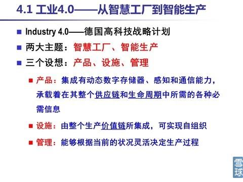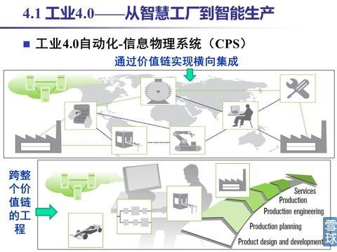 德國學術界和產(chǎn)業(yè)界認為,“工業(yè)4.0”概念即是以智能制造為主導的第四次工業(yè)革命,或革命性的生產(chǎn)方法。該戰(zhàn)略旨在通過充分利用信息通訊技術和網(wǎng)絡空間虛擬系統(tǒng)—信息物理系統(tǒng)(Cyber-Physical System)相結合的手段,將制造業(yè)向智能化轉型。