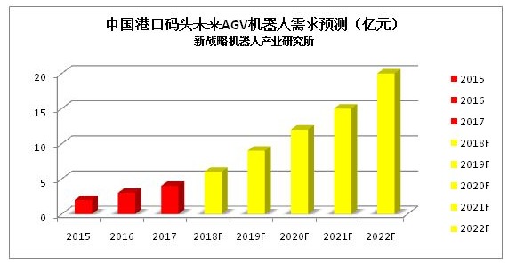 據(jù)測算,單個碼頭AGV小車的需求量約70臺,中國主要的單個大型港口的總需求量保守估計在1500臺,市場產(chǎn)值在5-10億元人民幣。截止2016年中國吞吐量過億的大型港口就有十五個,如果按照每個大型港口平均500臺(保守)AGV的需求量來算,就是7500臺AGV產(chǎn)品,市場產(chǎn)值將是20-60億人民幣。這僅僅是吞吐過億的十五大港口,中國貨運(yùn)碼頭港口總共超過500個。該市場需求將在較短時間內(nèi)呈直線上升趨勢,5年后逐步趨向穩(wěn)定??梢灶A(yù)測,未來的幾年,正因為巨大的經(jīng)濟(jì)和社會效益,港口應(yīng)用將是AGV在中國富有前景的行業(yè)。